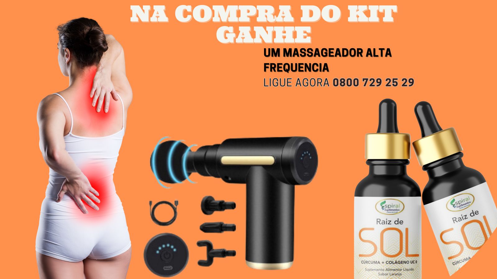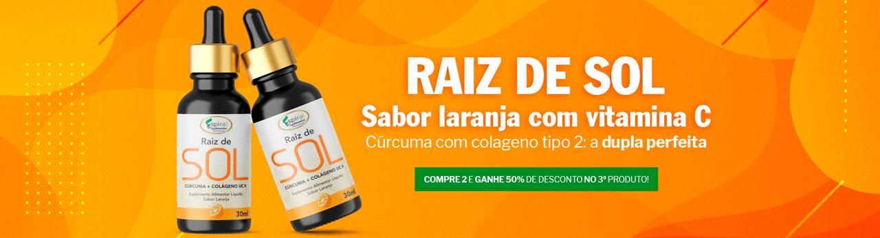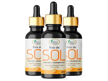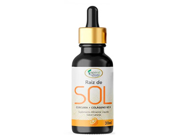 O Raiz de sol é Composto de Colageno UCII e Extrato de rizomas de cúrcuma longa, vitamina C no sabor laranja.